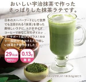 「ダイエット中でも罪悪感なく甘い飲み物を飲みたい!」お客様のそんな気持ちにお応えするため、日本のスーパーフードとして世界でも注目される抹茶を使った美味しいラテを作りました!エクササイズコーヒーのサポート成分はそのままに、カロリーと脂肪分を抑えた抹茶ラテ。ホットはもちろん、アイスでも美味しくお飲みいただけます。