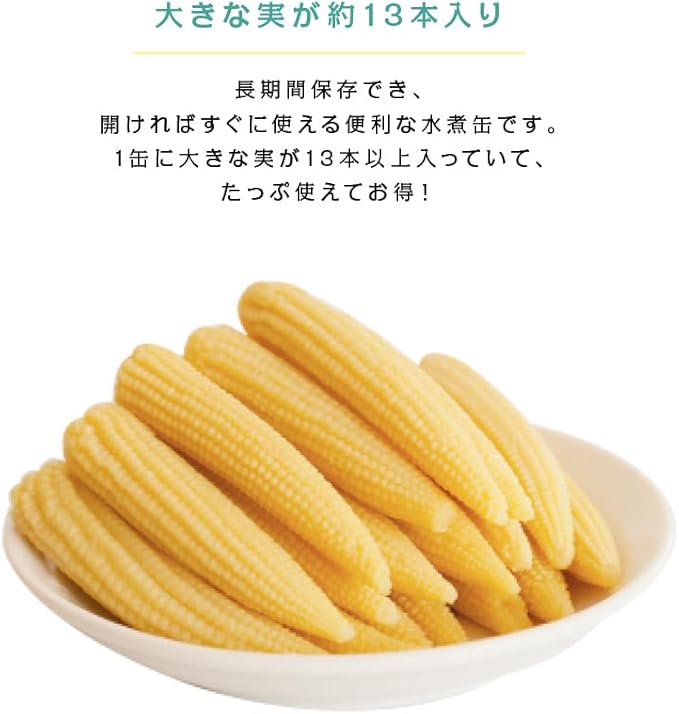 しっかり太さ・長さのあるベビーコーンが1缶に13本以上入っています。