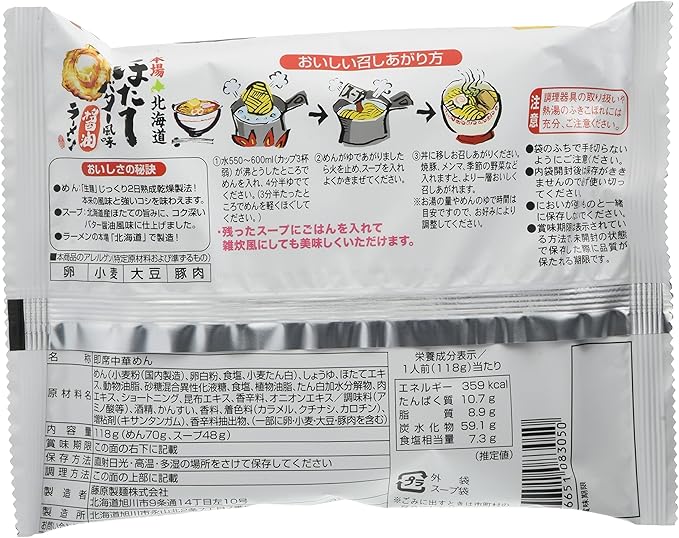 藤原製麺 本場北海道ほたてバター風味醤油ラーメン 118g×10袋 a