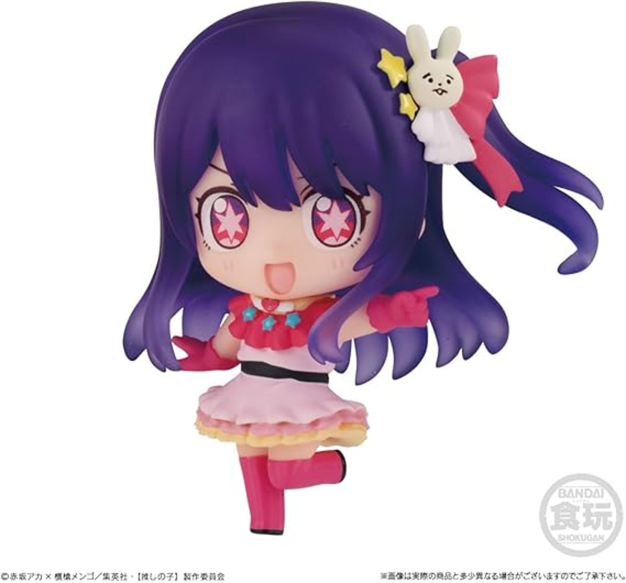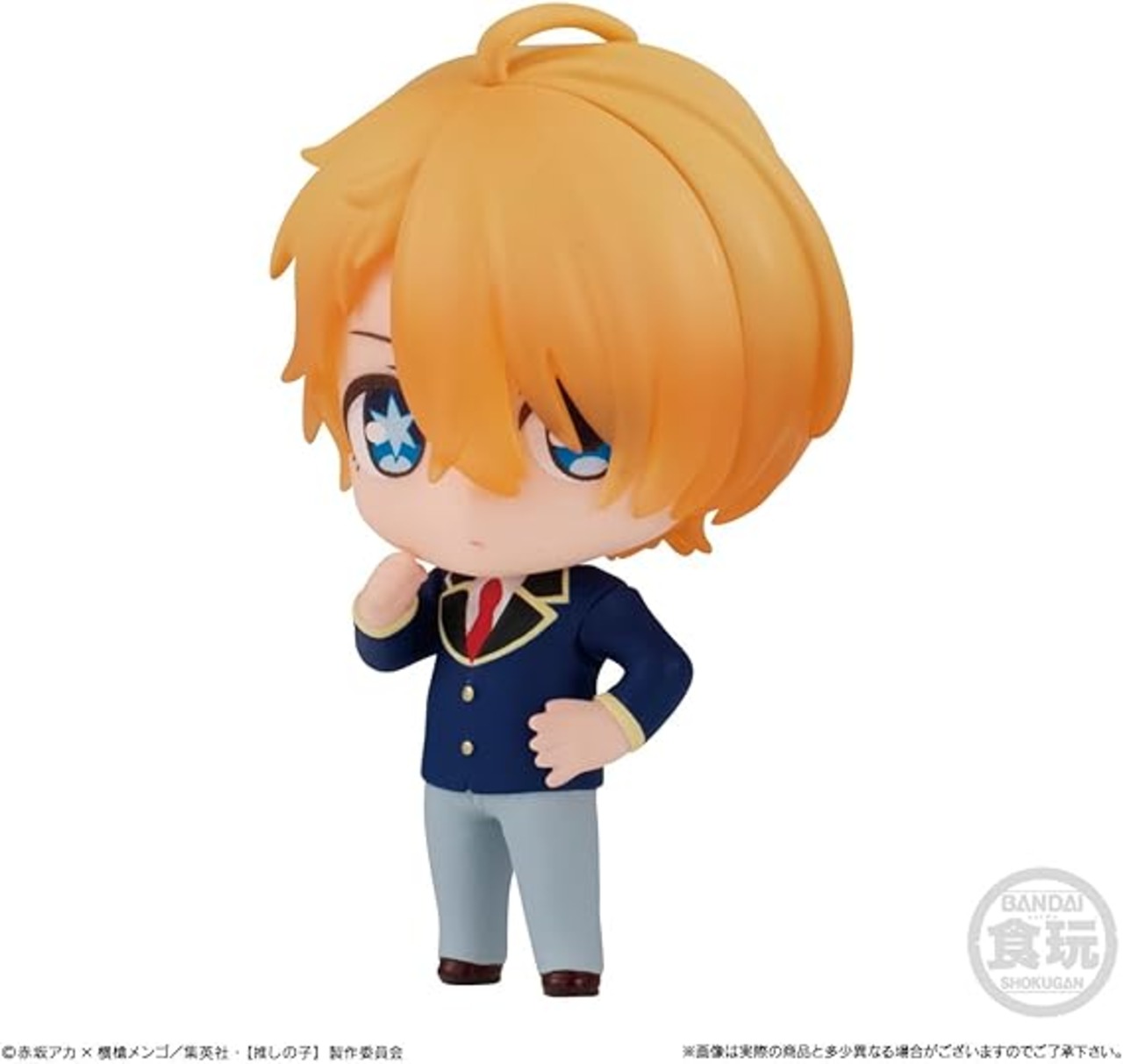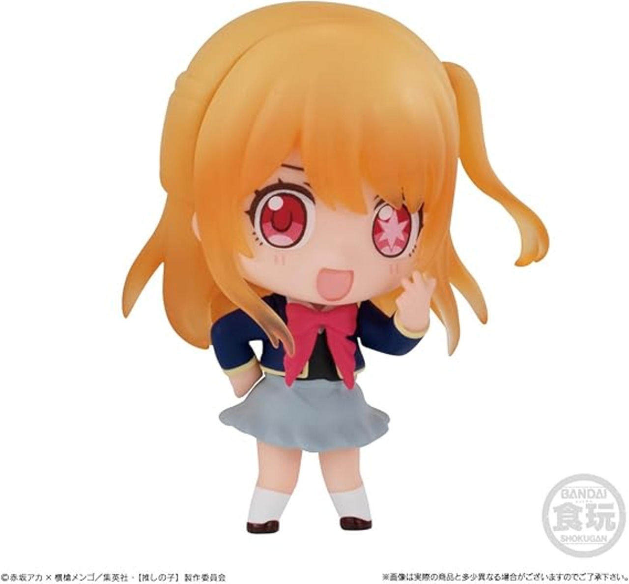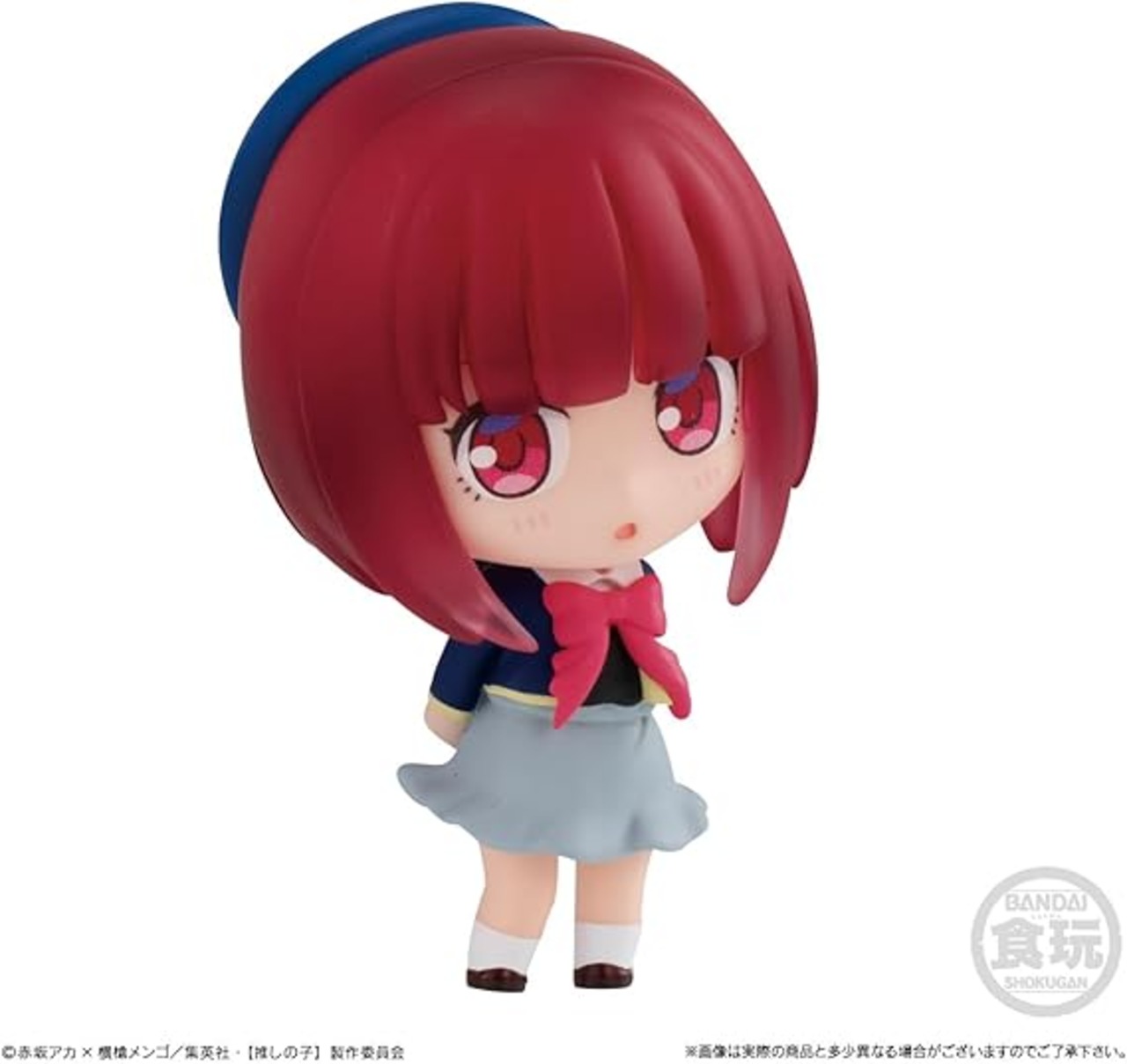 【推しの子】よりかわいくディフォルメされたコレクションフィギュアが登場! 集めて並べたくなる台座付きフィギュアです。 ●彩色済フィギュア一式(全8種/うちシークレット1種) 1.アイ(アイドル服) 2.アクア(制服) 3.ルビー(制服) 4.有馬かな(制服) 5.黒川あかね 6.MEMちょ 7.シークレット 8.ぴえヨン ●ガム(ソーダ味)1個