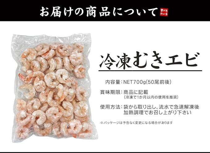 まぐろ処一条 冷凍 むきえび NET700g(50尾前後) 加熱用 殻剥き済み 背ワタなし えび エビ 海老 [[むきえび700g] a