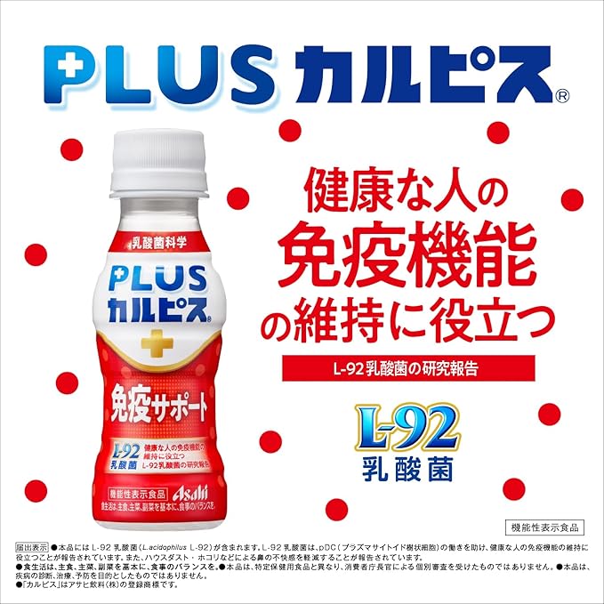 アサヒ飲料 PLUSカルピス 免疫サポート ラベルレスボトル 100ml×30本 [機能性表示食品] [健康な人の免疫機能の維持に役立つ] [ホコリ・ハウスダストなどによる鼻の不快感を軽減する] [L-92] [常温保存可能] a