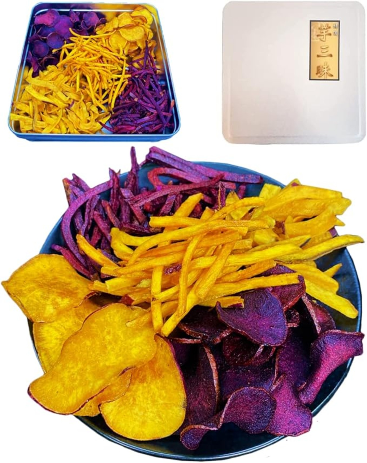 【芋けんぴ&さつまいもチップスへの思いとこだわりの手作り】 食に対する安心・安全・健康的・おいしさへの期待に応えたいという思いから国産原料にこだわって1つひとつ丁寧に作っております。芋けんぴ&さつまいもチップスは創業当時より守り続けている手揚げ製法による手作りの良さを十分に生かしたどこか懐かしい素朴な風味のお菓子に仕上げています。機械やロボットに頼ることなく、すべての製造工程で人の手が多く加えられています。この手造りの要素がお客様から愛されるおいしさの秘密です。【厳選されたこだわりのさつまいも】