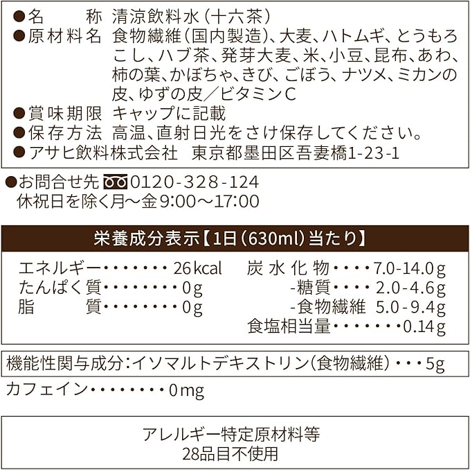 アサヒ飲料 十六茶と3種のいいこと 630ml×24本 [お茶] [ノンカフェイン] [機能性表示食品] [糖と脂肪の吸収を抑える] [おなかの調子を整える]