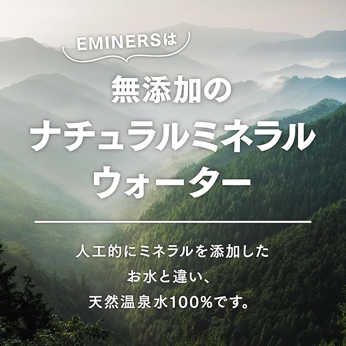 【ミネラル豊富な軟水】 天然美温泉水「EMINERS」は、軟水となっております。水の硬度が1Lあたり87.6mg/ℓとなっており軟水ですが、多くのミネラル成分が豊富に含まれています。日本人が好む軟水ですので非常にまろやかで飲みやすい温泉水となっております。