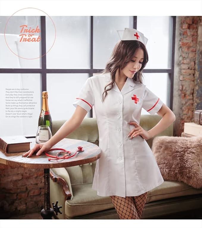 [Anna Mu] ナース服 コスプレ 制服 レディース ワンピース 看護師 医者 白衣 セクシー エッチ 過激 ハロウィン M-XL z1924