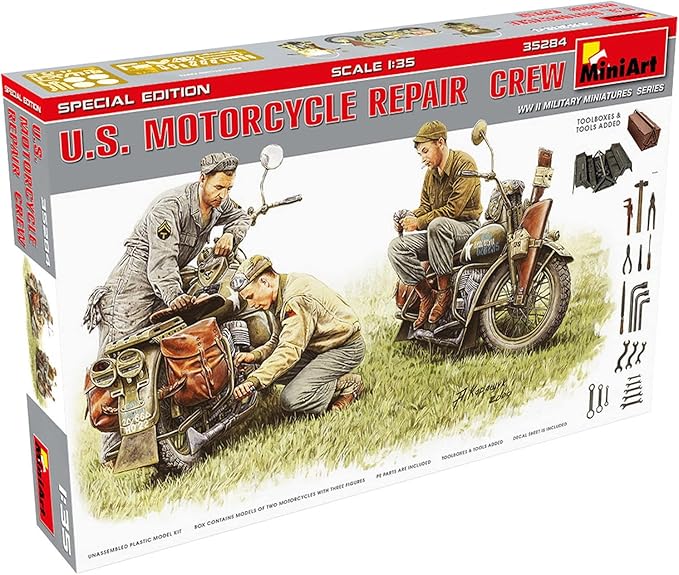 ミニアート 1/35 アメリカ軍 バイククルー修理中 フィギュア3体入 特別版 (工具、工具箱付) プラモデル MA35284