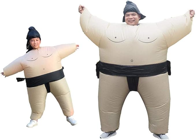 [easylivegogo] ハロウィン インフレータブル服 面白い 相撲服 目立つ コスプレ 膨らむコスチューム ハロウィン衣装 親子 文化祭 演劇 パーティー つなぎ筋肉相撲服 相撲 帽子 送風機付き 3点セット ユニセックス