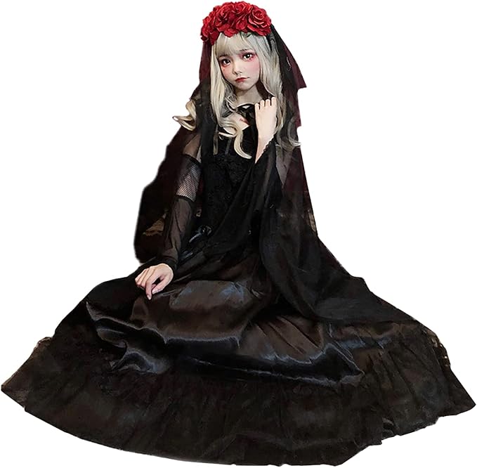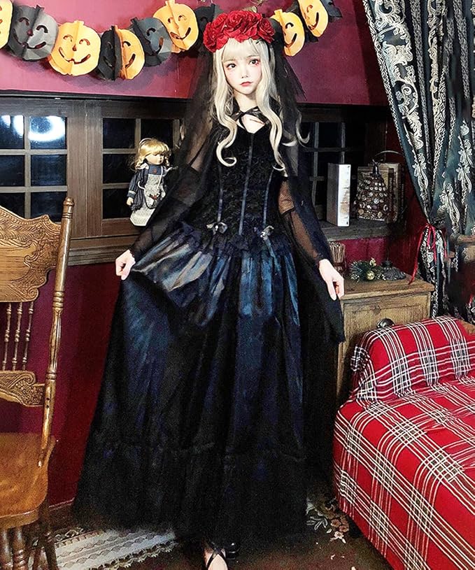 [milky time] ハロウィン コスプレ ゾンビ ヴァンパイア ゴースト 幽霊 コスチューム 薔薇 花嫁 可愛い セクシー ゾンビ花嫁 ロング 黒 a