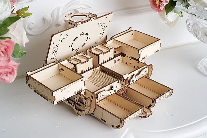 このモデルは、ジュエリーや小さな雑貨をスタイリッシュに分類して保管するのに役立ちます。 環境に優しい高品質の素材で作られたアンティークボックスは、天然木の心地よいフレッシュな香りがします。 新しいアンバーボックスを組み立てるのに必要なものはすべてモデルのパッケージに入っています。貴重な琥珀の石は特別な賢い器具でボックスの蓋に固定されます。