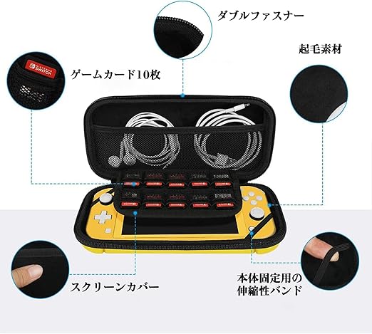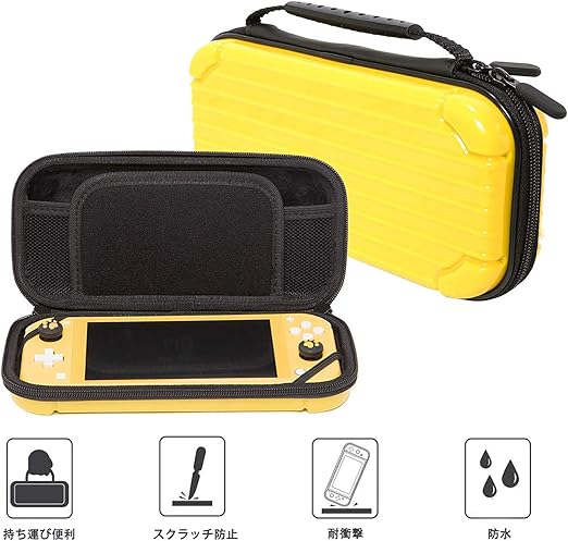 Switch Lite ケース スイッチライト キャリングケース ハードポーチ 収納バッグ ゲームカード 10枚収納 防塵 防汚 耐衝撃 全面保護型 イエロー a