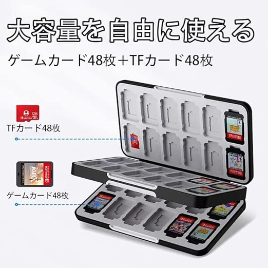 Limeng Switch ゲームソフト 48枚ゲームカード収納ケース SD TF カード 収納可能 カードケース 耐衝撃 軽量 薄型 持ち便利 (ブラック) a