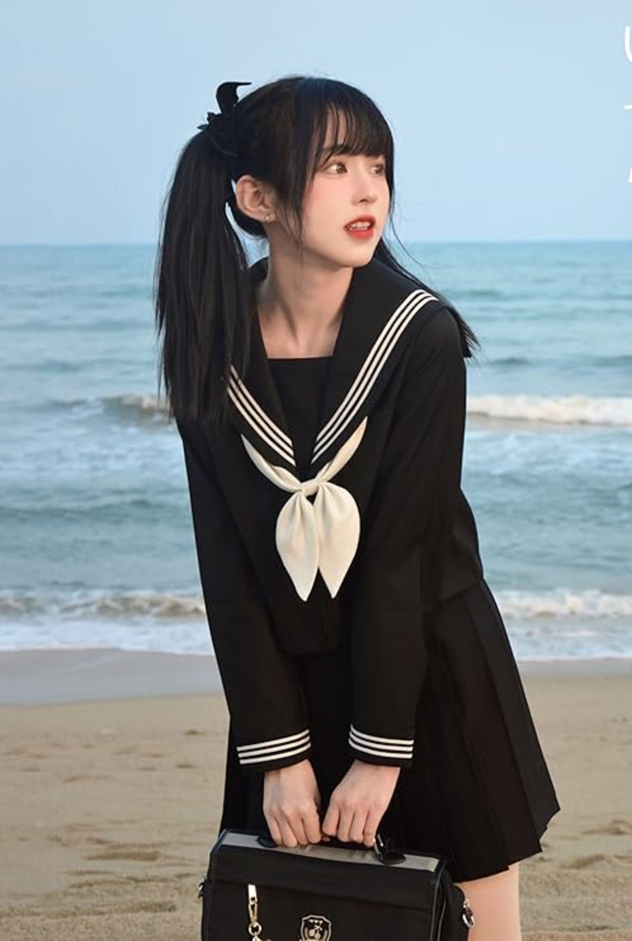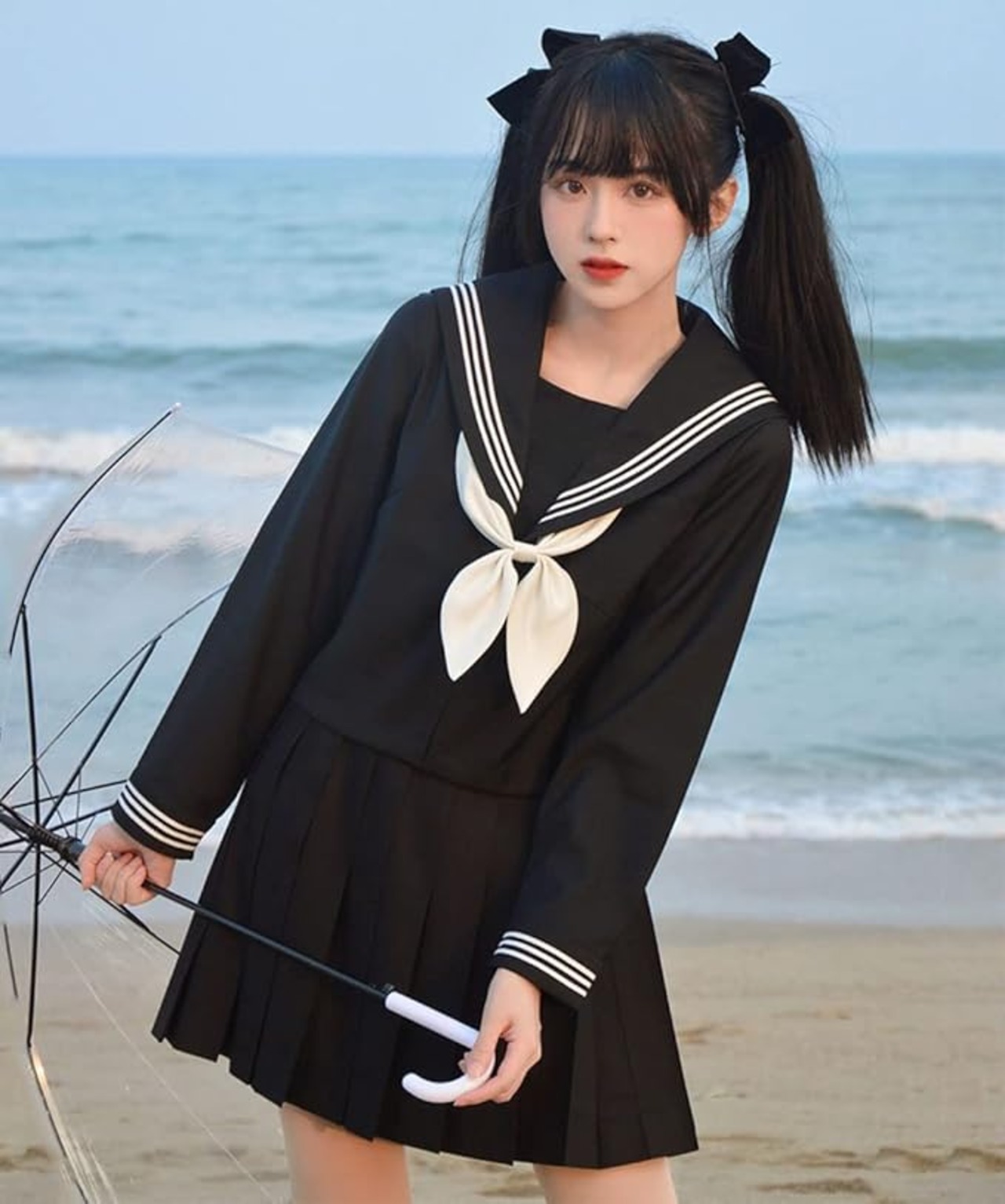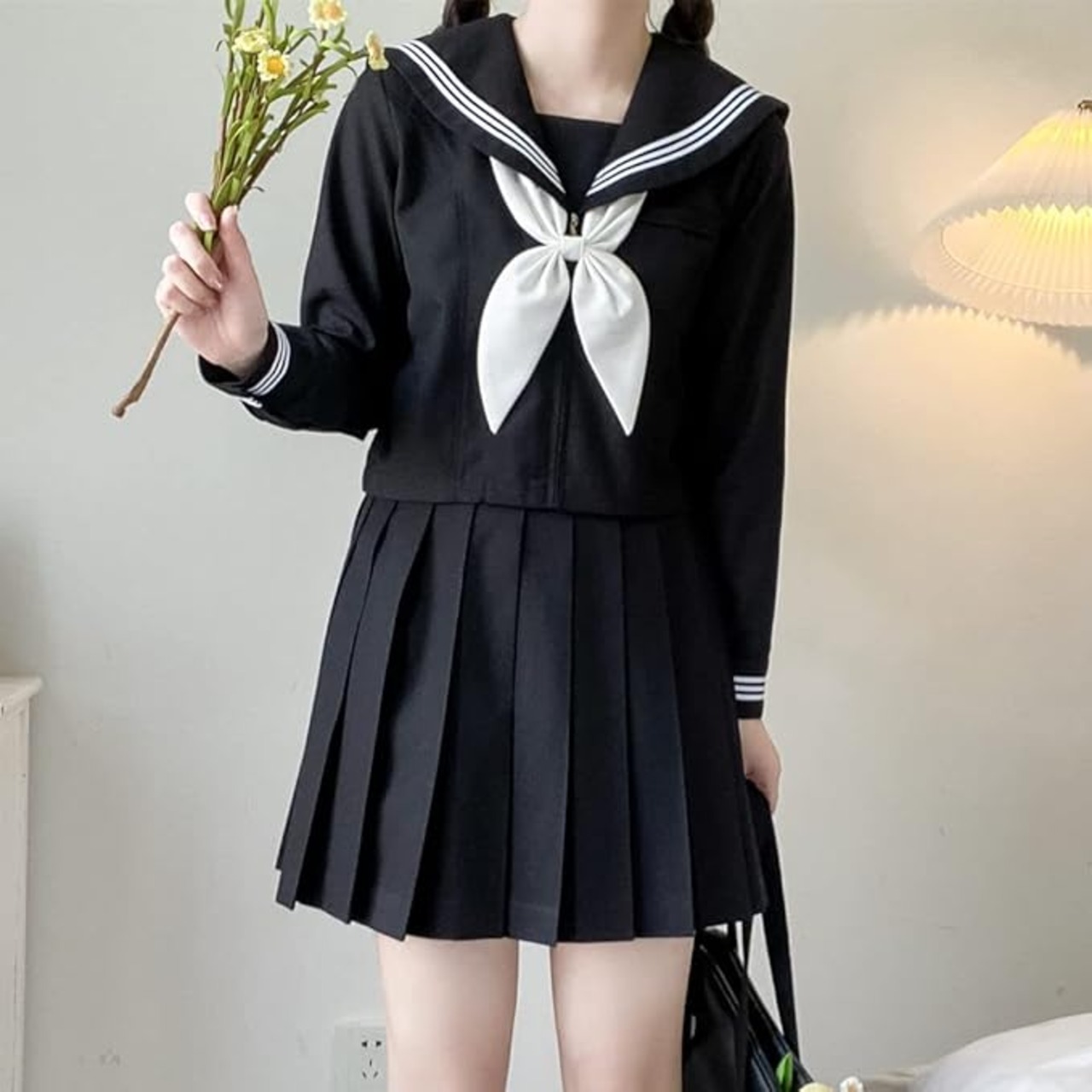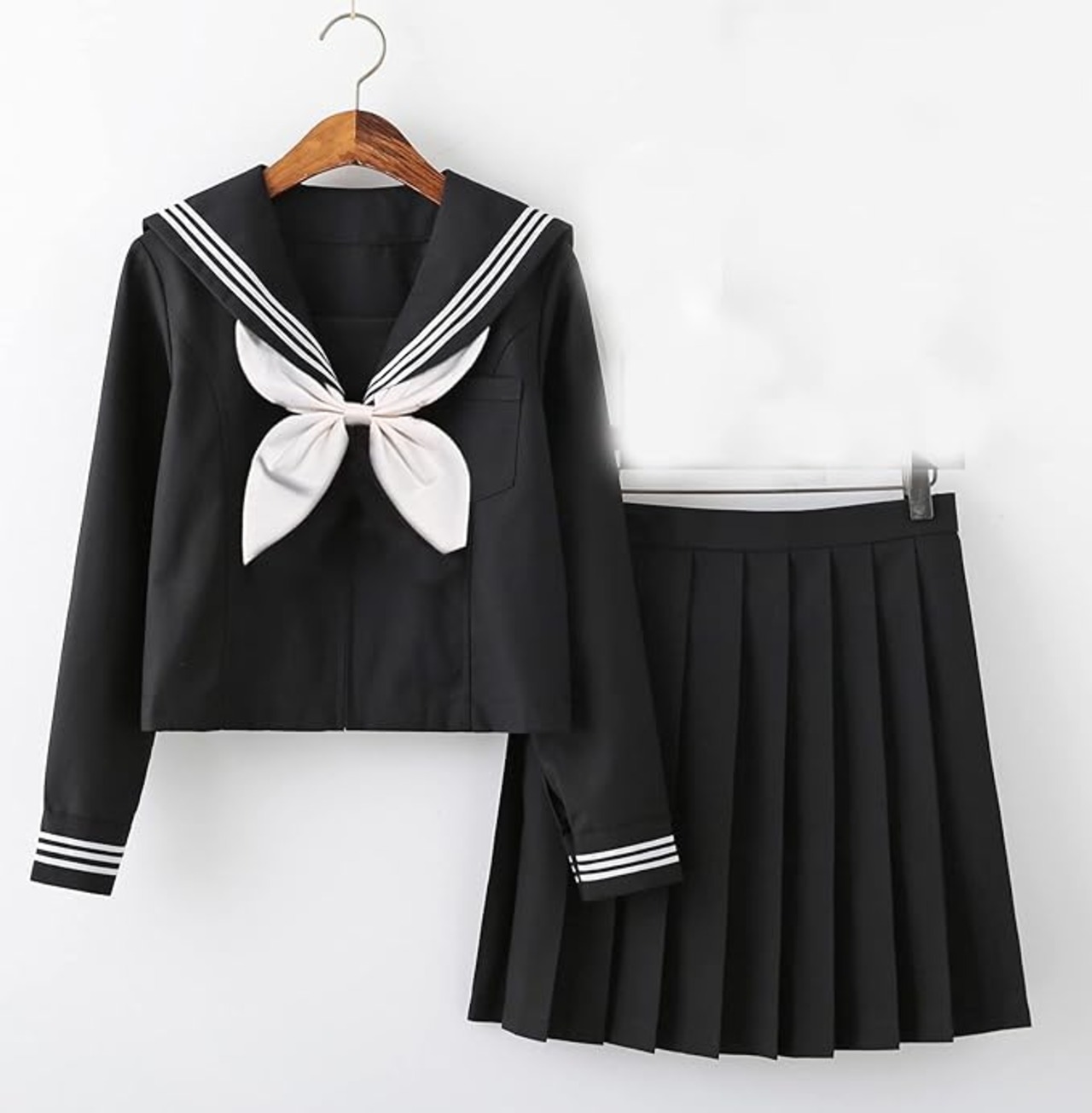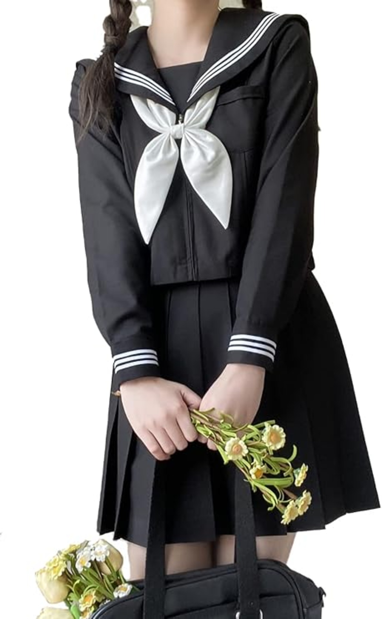 [カウィー・レクスハ] 【まるこの猫柳】セーラー服 長袖 半袖 白い 紺 ロングスカート コスプレ 学園祭 文化祭 仮装 本格制服 5点セット 靴下付き a