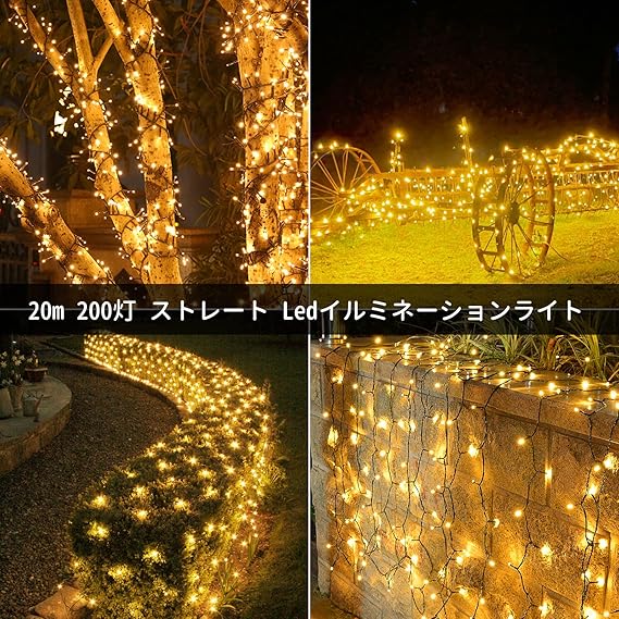 Dalugo LED イルミネーションライト ストリングライト ストレート クリスマスツリーライト 20M 200LED 複数連結可 8点灯モード 記憶/タイマー機能 クリスマス飾り/電飾 屋外 IP44防水 キャンプ用 フェアリーライト ガーデンライト 室内 ハロウィン/パーティー 会場/庭 (ウォームホワイト)