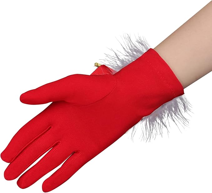 [Folove] コスチューム 女性 セクシー 手袋 クリスマス コスプレ サンタクロース 衣装 グローブ 鈴とリボン ふわふわ サンタ女 手袋 赤 ダンス服 演出 ハロウィン 仮装小物 イベント パーティー クラブ a