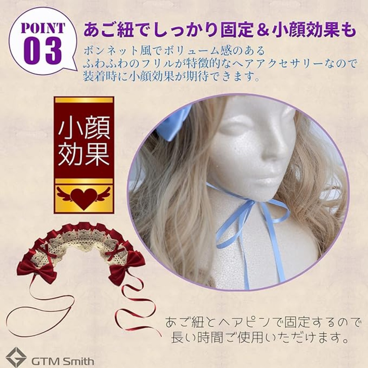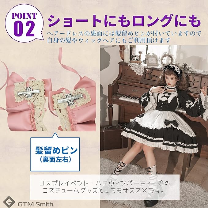 ショートにもロングにも:へアードレスの裏面には髪留めピンが付いていますので、自身の髪やウィッグにもご利用頂けます