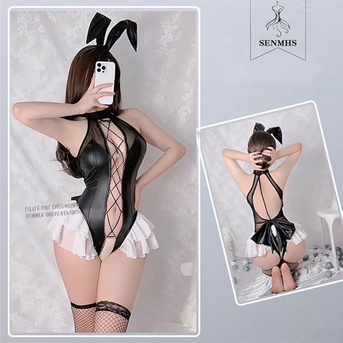 [SENMHS] バニーガール コスプレ うさぎ バニー ボンテージ エロ エッチ な 調教 誘惑 小悪魔 ハイレグ レオタード コスチューム 仮装 大胆 PU革 ランジェリー うさ耳 カチューシャ レディース パーティー クリスマス イベント ハロウィン 撮影 ブラック