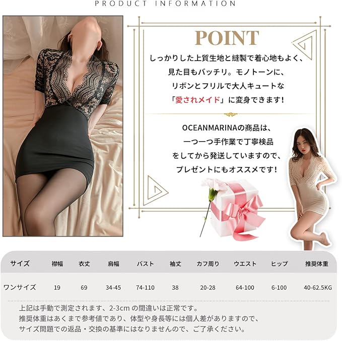 [Oceanmarina] コスプレ コスチュームセット セクシー レースパッチワーク秘書服-6757 ランジェリー コスチューム 衣装 インナーシャツ レディース 大人用 仮装 プレゼント ワンピース+Tパンツ(2 点セット)