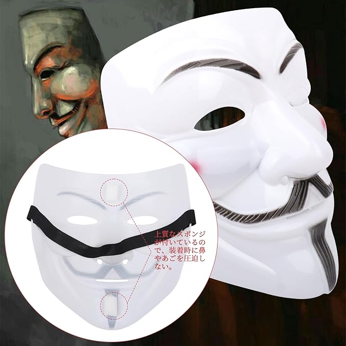 [Mprocen] アノニマス マスク ハロウィン お面 V ホワイト 仮面 仮装 コスプレ 国際的ハッカー集団 ガイ フォークス (ホワイト) a