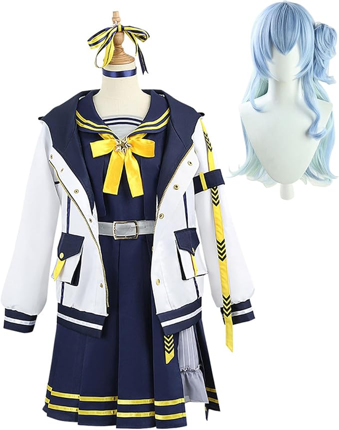 [神併良品] 星街すいせい コスプレ ウィッグ付き Vtuber コスプレ衣装 大人用 仮装 文化祭 イベント セーラー衣装 コスチューム ステージ服 (星街すいせい ウィッグ付き, XL) a