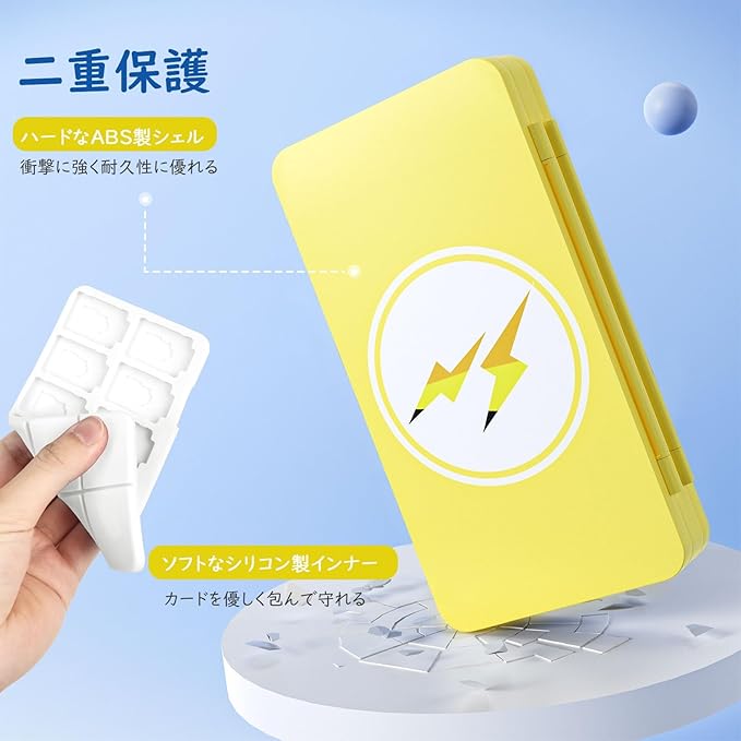 Switch ソフトケース ソフト48枚/MicroSDカード24枚同時に収納 ATiC カード収納ケース Switch/Switch Lite/Switch有機ELモデル対応 ゲームカード収納ボックス カードまとめ収納 耐衝撃 軽量 防塵 持ち運び便利 イエローしっぽ a