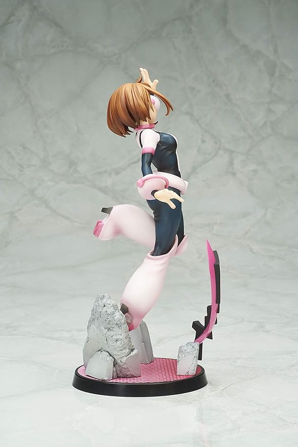 TVアニメ『僕のヒーローアカデミア』より、「麗日お茶子」をヒーロースーツで立体化!無重力 (ゼログラビティ)の『個性』を持つ彼女の躍動感を表現するため、瓦礫とアメコミ風の文字を台座に配置しました。