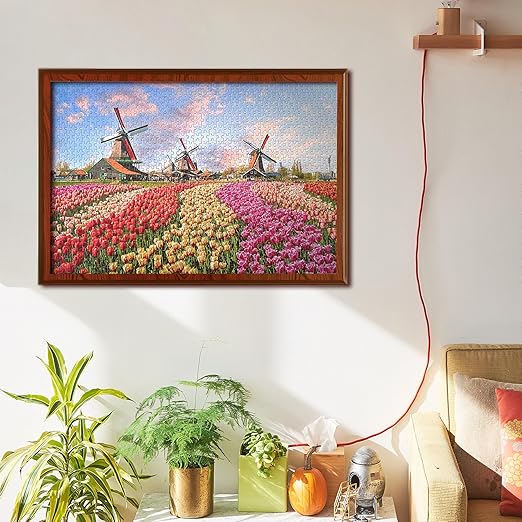 MISITU ジグソーパズル マイクロピース 1000ピース パズル 風景 自然 花 花畑 花園 風車 プレゼント 誕生日 クリスマス おしゃれ インテリア チューリップ (26 x 38 cm) a