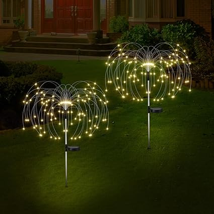 Lewondr ガーデンライト 花火型 2本セット クリスマス用ライト イルミネーションライト LEDライト 40本ワイヤー 120球 全長80cm ソーラー充電式 自動点灯 省エネ 防滴 屋外用 庭/公園/屋外/イベント/商店街 飾り インテリアライト オーナメント
