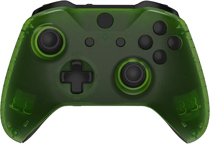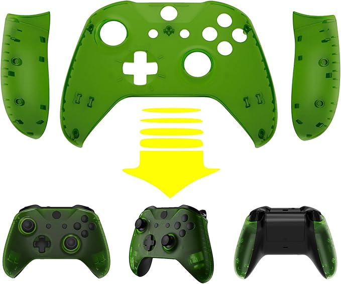 eXtremeRate Xbox One(モデル1708)対応用フロントハウジングシェルとサイドレールハンドル(クリア素材)、Xbox One X&S対応用バックパネル交換フェイスプレートパーツ【クリアグリーン】 a