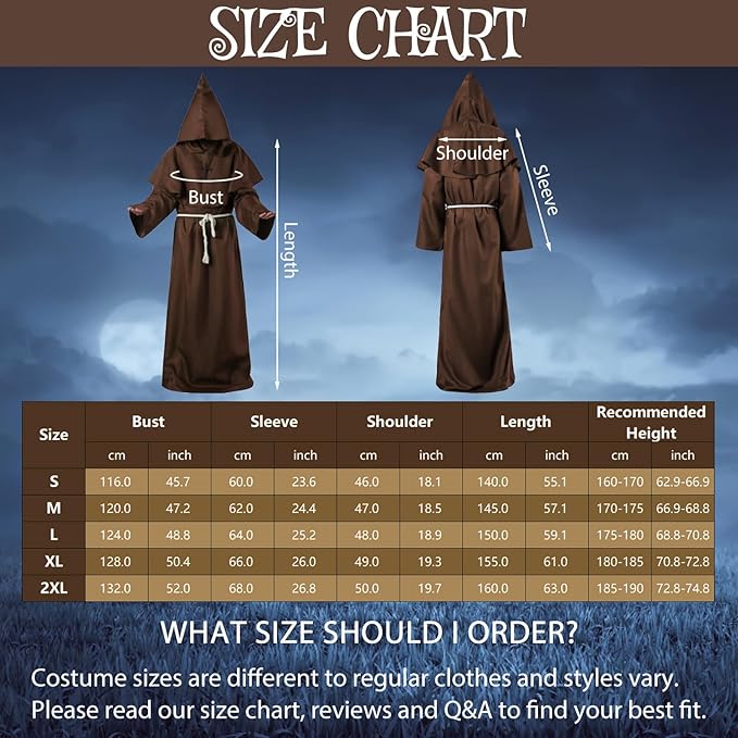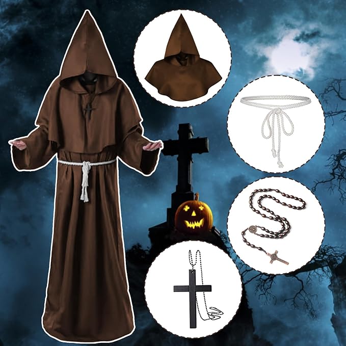 [HarnyLoom] ハロウィン 仮装 中世 修道士 ハロウィン衣装 大人 メンズ コスチューム 神父 牧師 僧侶 死神 教徒 ロング フード ローブ コスプレ 衣装 フード付き 修道服 パーティー クリスマス 宴会 文化祭 学園祭 男女兼用 b