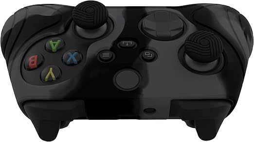 eXtremeRate PlayVital Samurai版Xbox Series X/Sコントローラーに対応用アンチスリップシリコーンカバースキン、ブラックの親指グリップキャップ付き、Xbox Coreワイヤレスコントローラ対応用ソフトラバーケースプロテクター【ダークグレー&ブラック】 a