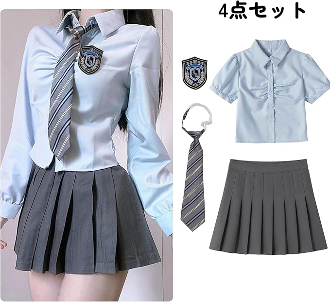 [QOOLY?] 女子高生 制服 学生服 セーラー服 JK制服 高校制服 4点セット (シャツ+ネクタイ+スカート) スクール 無地 ファッション レディース お揃い 卒業式スーツ ハロウィン コスプレ