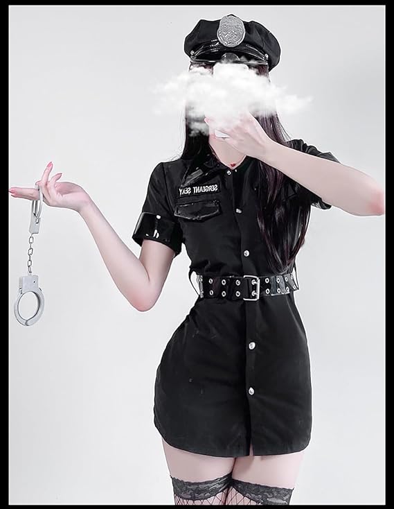 [SUAIARTCOLE] ポリス コスプレ セクシー ハロウィン 仮装 レディース 警察官 コスチューム 5点セット 可愛い ミニスカ 制服 警察 婦警 婦人警官 衣装 パーティー イベント 文化祭 a