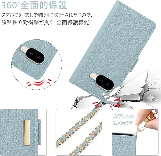 CASSYOOK google pixel 9a ケース グーグルピクセル9a 手帳型 財布型 カバー カードポケット付き ぐーくるぴくせる9a ケース 手帳型 ショルダー 全面保護 耐衝撃 googleピクセル9a ケース 手帳型 カード収納 横置きスタンド機能 高級PUレザー おしゃれ 上質な手触り 擦り傷防止(ブルー) a