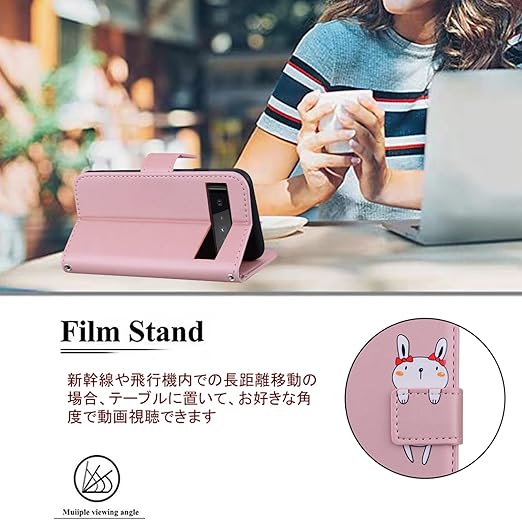 Google Pixel 9A ケース 手帳型 Pixel 9A 手帳型ケース Pixel 9A ケース ピクセル 9 A 手帳ケース スマホケース 携帯カバー グーグルピクセル9a カバー 携帯ケース カバー レザー製 TPUケース カード収納 財布型 ベルトマグネット スタンド機能 兎 かわいい 動物柄 耐久性 黒 (Google Pixel 9A 対応) ゴールドピンク a