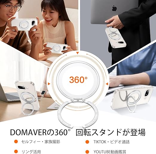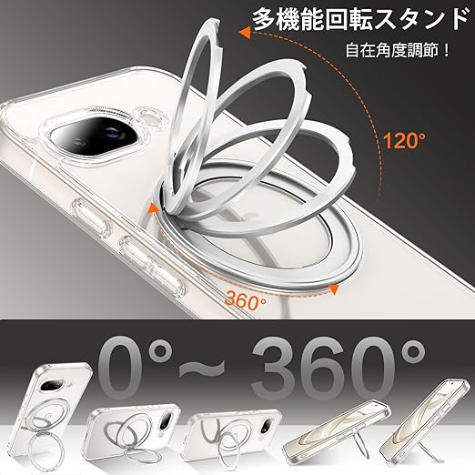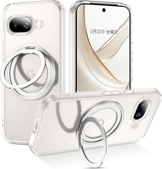 DOMAVER Google Pixel 9A ケース 360°回転スタンド 縦横両対応 リング マグネット搭載 MagSafe対応 透明 耐黄変 ワイヤレス充電対応 ピクセル9a ケース 米軍MIL規格耐衝撃 指紋防止 グーグルピクセル9A カバー 6.3 インチ クリア a