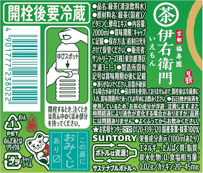 サントリー 緑茶 伊右衛門 2L×6本 a