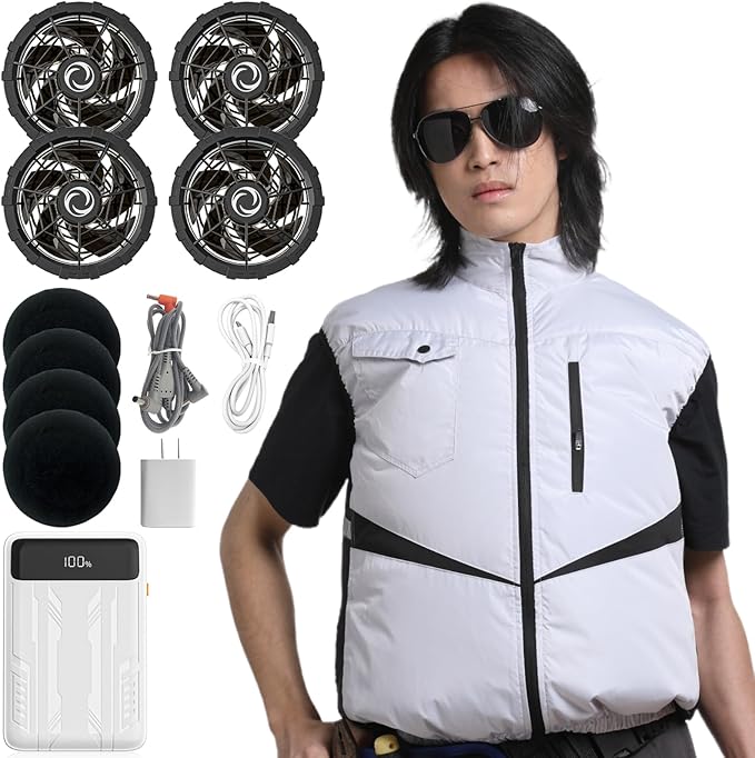 [Hon&Guan] 2025新登場 ファン付きベスト 4ファン 空調ベスト ファンバッテリーセット【チタン加工/体感-10℃ / 20000mAh / Type-C急速充電/ディスプレイ表示/防塵カバー付】 熱中症対策 PSE認証済 男女兼用