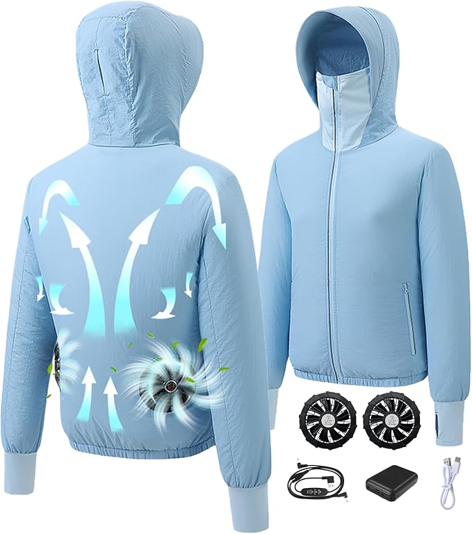[YORIYOI] 空調作業服 長袖 レディース メンズ ファン付き作業服 大容量バッテリー ファンバッテリーセット 女性用 作業服 帽子付け 冷風服 3D循環送風 3段階風量調節可 作業着 熱中症対策 d