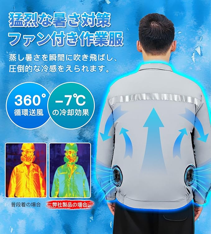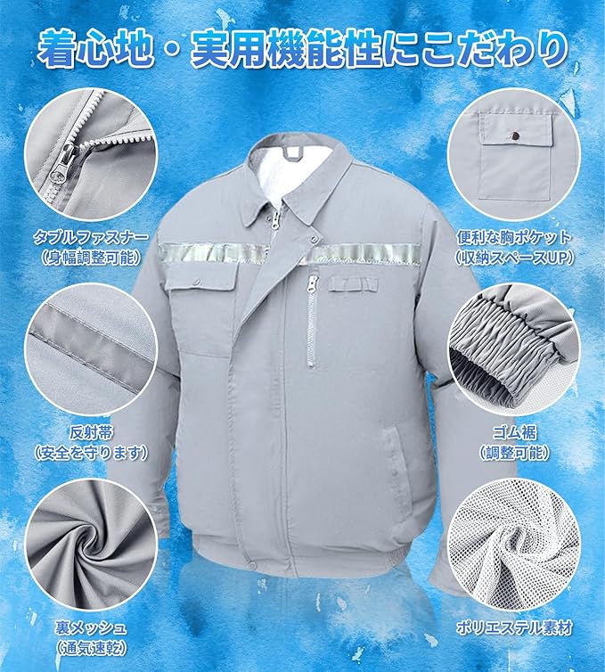 [FGTGGG] 空調作業服 ファン付き 40000mAh大容量バッテリー ファン付き作業服 冷却服 3D循環送風 3段階風量調節可 通気 サイズ調節可 最大20時間送風 長袖 UVカット PSE認証済 熱中症予防 猛暑対策 男女兼用