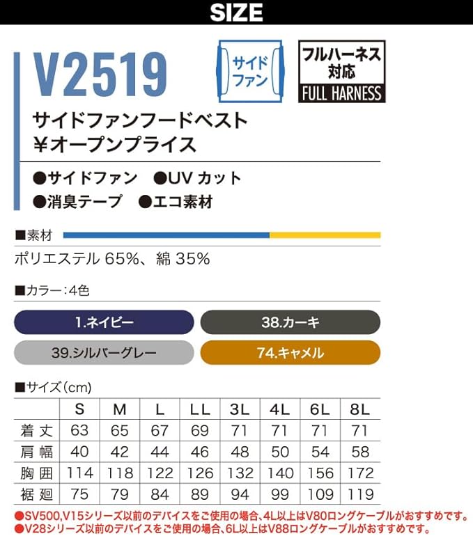 [武蔵野ユニフォーム] 村上被服 サイドファンフードベスト V2519 単品 快適ウェア 空調作業服 フルハーネス対応 <025-V2519>