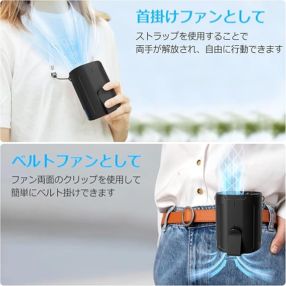【手軽なハンズフリーファン】2024年新型腰掛け扇風機をベルトやズボンのウエストバンドに取り付け、Tシャツの裾をクリップで挟んでスイッチを入れるだけで、涼しい風が吹きます。背中から首に向かって空気が循環し、全身を快適に保ちます。風の入り口は底部にあり、衣服を固定するクリップが付いているため、どんな服でも瞬時にエアコンのような効果を得ることができます。