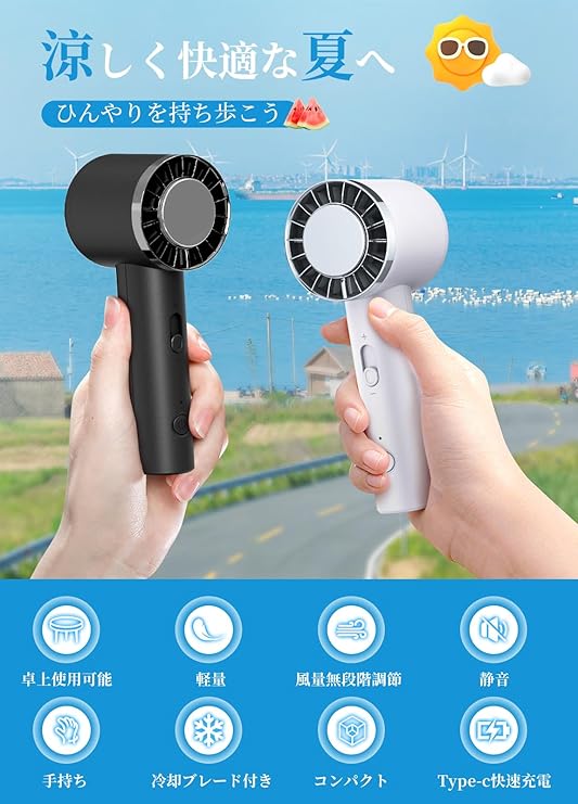 【無段階風量調節】このハンディ扇風機は、コンパクトなサイズでありながら強力な風量