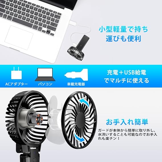 【最新の携帯扇風機】usb 扇風機とモバイルバッテリーを組み合わせて、手持ち、クリップ扇風機、卓上扇風機、首かけ扇風機とモバイルバッテリーとの5タイプ機能なので、楽しく使えます。室内でも屋外でも使いやすい汎用性の高いハンディ扇風機です。また、旧モデルと比較して、新しいモデルに断続モードが新たに追加されました。 健康面に配慮し、特別に3秒間隔の断続モードをデザインしました。自然のそよ風のような断続的なやわらかい風を送り出せます。長時間の扇風機を使った不快感を避けることができます。風に当たり続けるこ