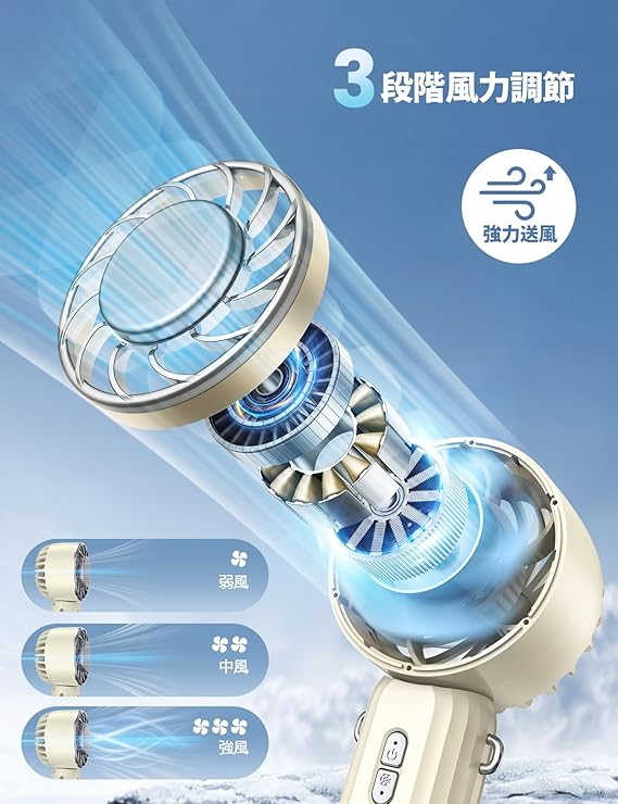 【ベルチェ半導冷却プレート・熱中症対策】ハンディファンはベルチェ半導冷却プレートを搭載、暑い夏には冷却機能をオンにして、冷却プレートを首、額、手首などに貼り付けるだけで、心地よく氷のような冷たさが感じられます。 夏には欠かせない便利なアイテム。注意:冷却機能は送風機能使用後にのみ使用可能で、単独では使用できません。また、冷却機能を作動させるには、冷却ボタンを