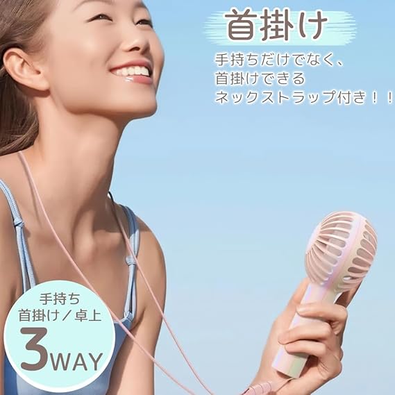 ハンディファン オーロラカラー USB充電式 小型扇風機 首掛けストラップ付 卓上 小型 軽量 シェルカラー かわいい 暑さ対策 熱中症対策 (ホワイト) a