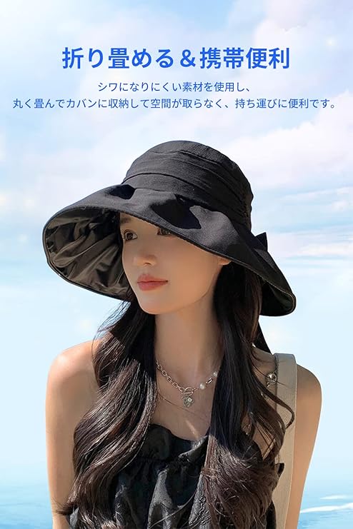 [Gokamoi] UVカット 帽子 レディース ハット レディース 日焼け防止【つば広・小顔効果・折りたたみ・サイズ調節】 遮光 遮熱 通気 紫外線対策 日除け帽子 ワイヤー入り あご紐 散歩 旅行 通勤 大きいサイズ 春夏 a