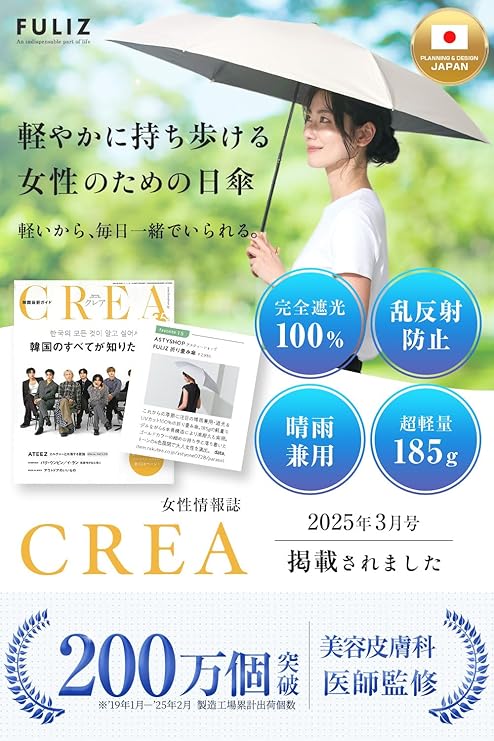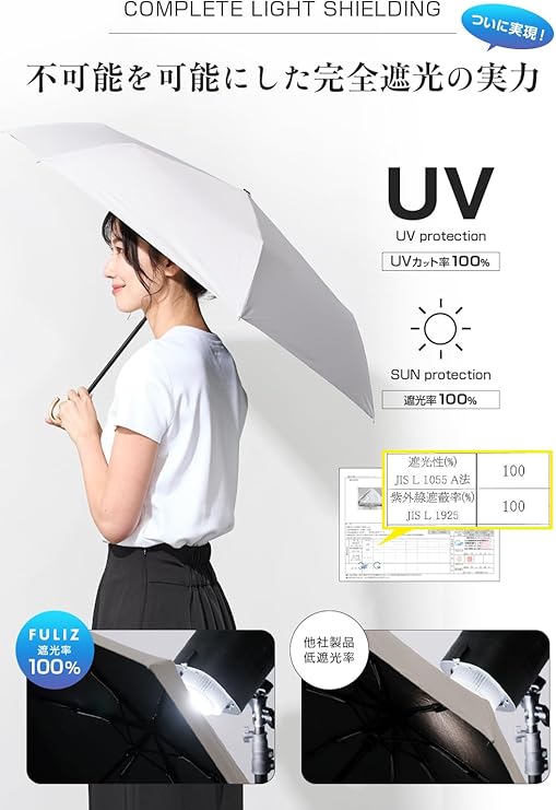 FULIZ 日傘 uvカット 100 遮光 折り畳み傘 超軽量 晴雨兼用 折りたたみ傘 レディース 完全遮光 【美容皮膚科医監修×女性誌掲載】