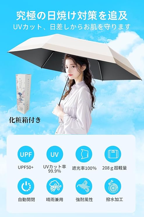 日傘 軽量 UVカット 100 遮光 遮熱 折りたたみ日傘 メンズ レディース 晴雨兼用 メンズ傘 折りたたみ傘 コンパクト 折り畳み傘 ワンタッチ自動開閉 携帯便利 化粧箱付き プレゼント