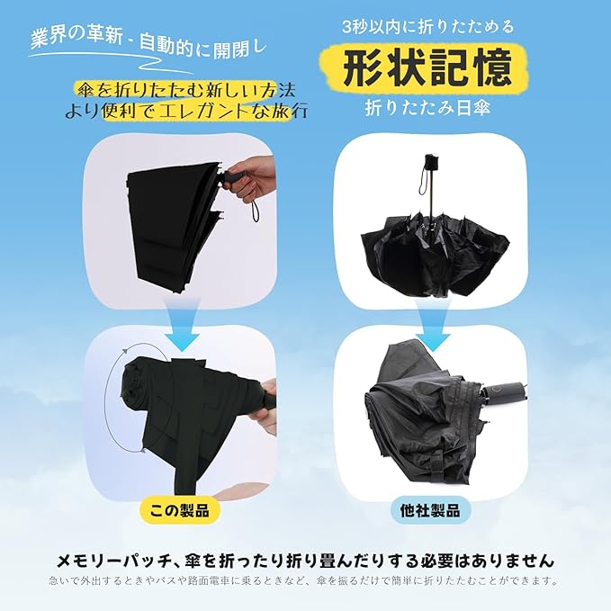 形状記憶 3秒でたためる傘 日傘 晴雨兼用 軽量 252g UVカット率 100% 完全遮光 遮熱 ワンタッチ自動開閉 折りたたみ傘 おりたたみ 折り畳み日傘 コンパクト 紫外線遮断 耐風撥水 携帯便利 メンズ レディース 母の日 父の日 贈り物 f